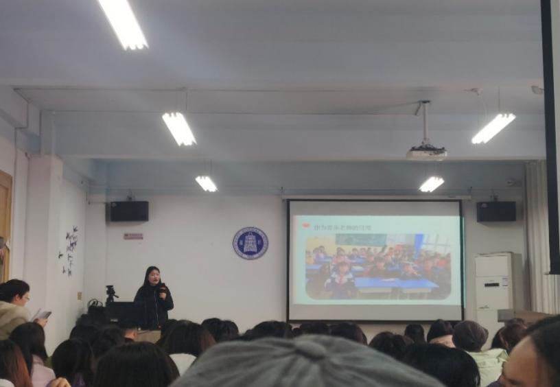 第三位进行分享的是2020级本科生曹改弟。曹改弟同学分享了自己在支教实习期间的趣事,她非常热爱自己的实习岗位,爱护自己的每一位学生,希望每一个学生的成绩在她工作期间都能够得到提高。最后,她希望2021级本科生能够接好西北师大实习支教的接力棒,承担好自己的使命,让青春之花开在祖国最需要的地方。