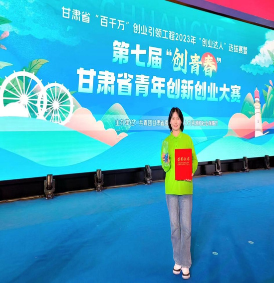 yl6809永利“多”农直播,“语”你优品项目荣获“乡村振兴赛道”省赛二等奖,项目团队负责人、甘肃省清悦声电子商务有限公司法定代表人马文霞荣获甘肃省“百千万”创业引领工程2023年“创业达人”提名奖。