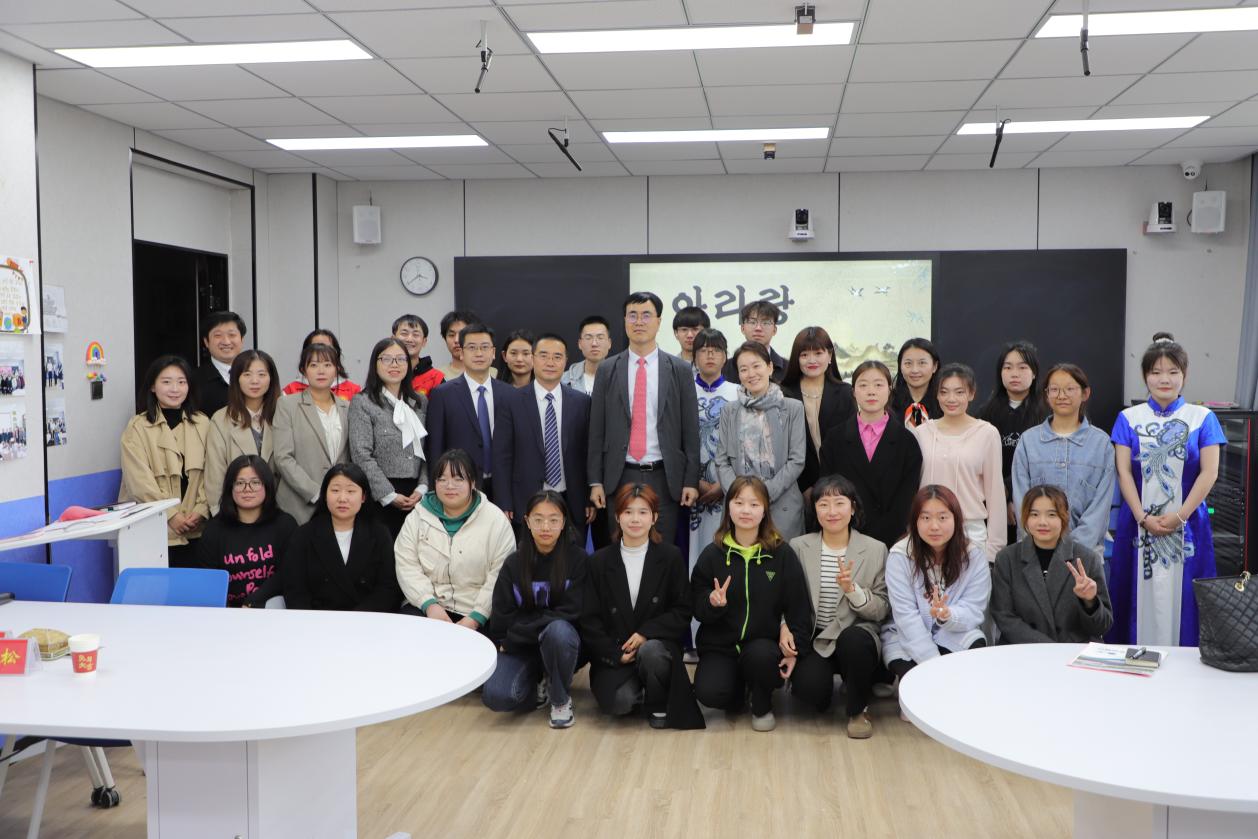 座谈会后,洪领事一行参观了yl6809永利朝汉语言文化交流中心,与同学们进行了友好交流,欣赏了朝鲜语系学生的诗歌朗诵和才艺表演。