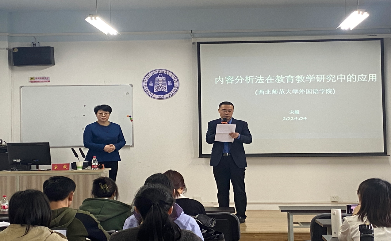 2024年4月19日上午,学院邀请北京外国语大学宋毅教授为我院师生作了题为“内容分析法在教育教学研究中的应用”的学术讲座。讲座由高育松院长主持,我院师生百余人参加了此次讲座。