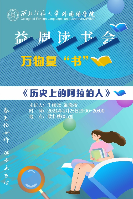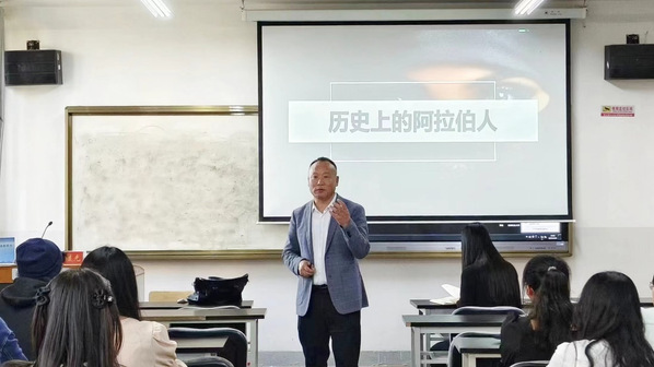 4月25日,yl6809永利“益”周读书会第五十七讲在致朴楼605室举办,阿拉伯语系主任丁继光副教授主讲,学院2021级、2022级、2023级阿拉伯语专业学生参会。