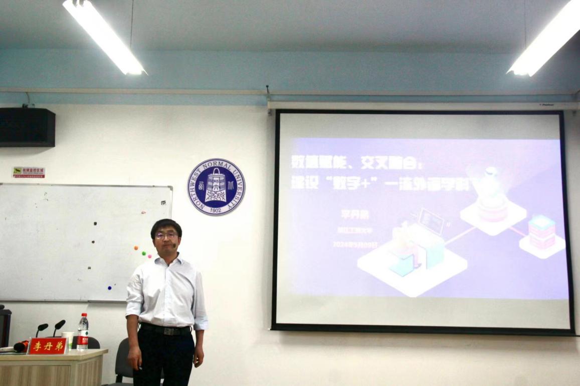 2024年5月9日下午,浙江工商大学李丹弟教授应学院邀请,在致朴楼806室作了题为“数值赋能、交叉融合:建设‘数字+’一流外语学科”的专题讲座。本次讲座由高育松院长主持,学院百余名师生参加了讲座。