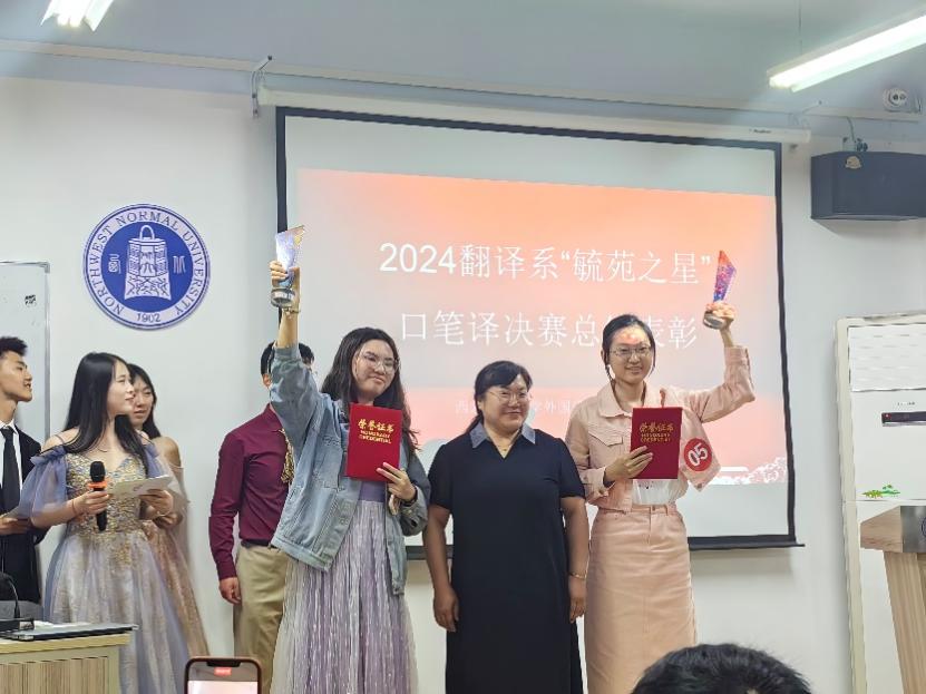 口译决赛采用淘汰赛制,经过四轮激烈角逐,最终决出一等奖二名、二等奖三名、三等奖五名、优胜奖二名,其中2021级翻译1班毛婉玲和2023级翻译1班申晓天同学双双荣获此次口笔译决赛一等奖。比赛结束后,杨海琴老师和杨晓红老师分别对本次口译和笔译决赛进行了点评,对选手们在比赛中的精彩表现给予了充分肯定,同时指出了同学们努力和前进的方向,鼓励翻译系所有同学向获奖选手学习,加强语言基础学习,不断提升专业素养。