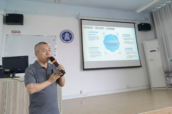 在互动环节,师建胜总经理耐心解答了人工智能在外语教育中的应用等相关问题,同时鼓励同学们积极拥抱技术变革,培养跨学科思维,以适应未来的教育和职场挑战。
