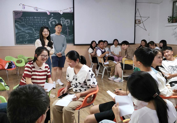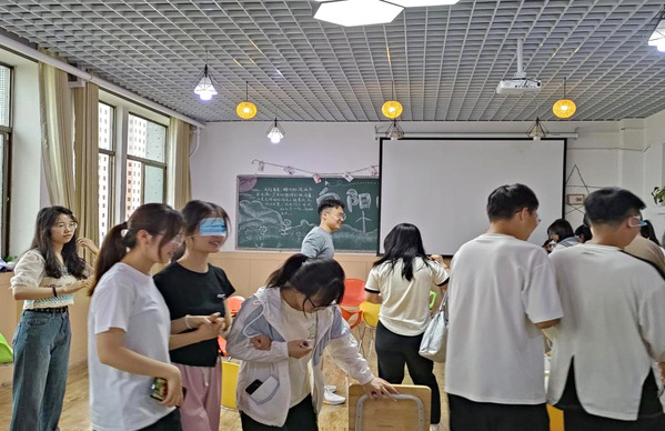 活动开始前,带领人以“松鼠搬家”游戏调动学生积极性,带领学生思考“落单”和“报团”现象出现的原因,鼓励学生们在团体之间建立信任感,为第二轮游戏“小小动物园”做准备。随后,带领人将学生分组,指导同学们介绍自己喜欢的动物,并互相交流、分享收获,引导同学们认识到人和人之间存在多样性,发现自己的优点和价值,学会在集体中发挥优势和作用;接下来,活动带领人以团队协作为线索进行“抢板凳”游戏,鼓励学生积极思考、踊跃发言,感受“众”的力量,并学会在实践中检验方法;最后,各小组进行“盲人与拐杖”游戏,同学们分别体验盲人与引路人的角色,进一步加深团体的信任合作,体验助人与受助的感受,增加成员之间的信任和集体的凝聚力。