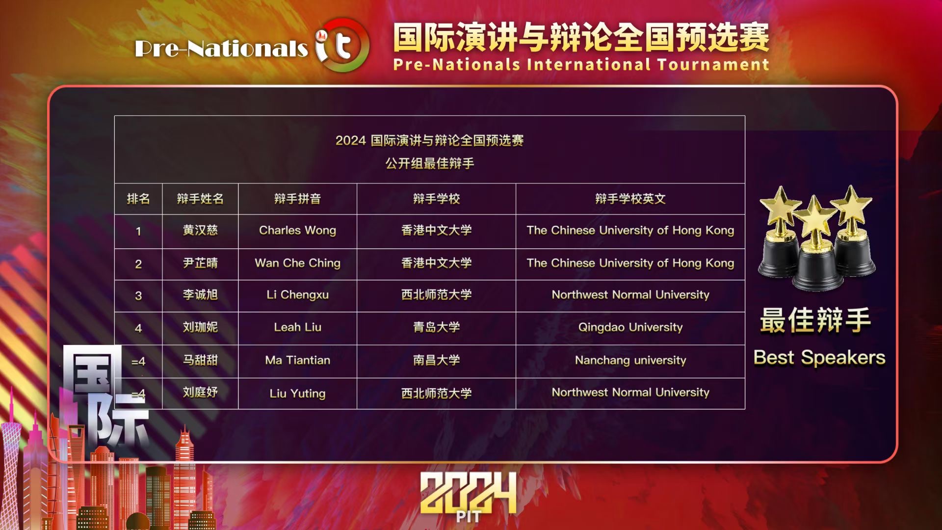 本次华西地区赛共分为两个阶段,第一阶段为循环赛,第二阶段为淘汰赛。来自河南省、重庆、四川、陕西、山西、甘肃、青海、宁夏回族自治区、内蒙古自治区、新疆维吾尔自治区、西藏自治区等地的共91支参赛队伍、182名参赛选手进行了两天的激烈角逐。辩手们旁征博引,结合理论与现实充分论证,用精准的语言、敏锐的洞察、清晰的逻辑和多维的思辨展现了新时代大学生在探索广阔世界和心灵情感时所具备的知识深度与人文广度。大赛启动后,我校代表队积极准备,全力投入。在经过校级选拔与历时一个多月的赛前集训后,我校代表队的两位同学先是在 “2024国际演讲与辩论全国预选赛”中荣获全国亚军,并双双获得最佳辩手称号。随后,他们又在此次地区赛中稳扎稳打,全力彰显了西北师范大学学子的气度和风范。