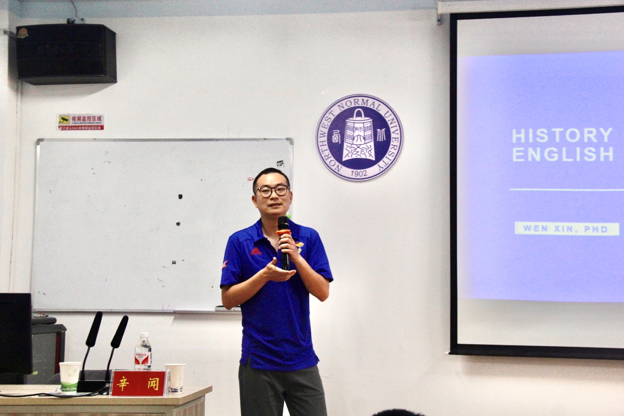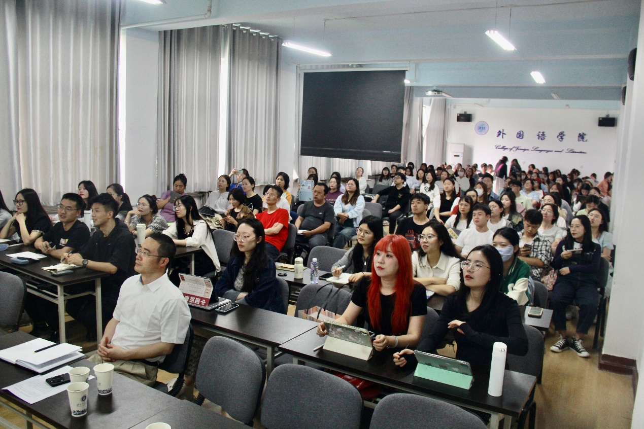 2024年6月3日下午,堪萨斯大学辛闻博士应邀在致朴楼806室作了题为“浅谈英语语言的演变以及英语历史研究中时间划分法的利弊”的学术讲座。本次讲座由院长高育松教授主持,学院百余名师生参加了讲座。