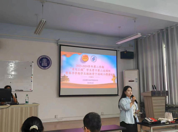 学院团委书记王芸霞主持本次活动。培训会上,2024年西北师范大学“十佳青年志愿者”获得者、“青马”班成员2023级英语4班李智智同学以《望前路,追风逐浪沐光行》为题,分享了她在学校的学习成长与志愿实践,鼓励“青马”班学员积极参加志愿服务活动,丰富自身经历,让青春变得五彩斑斓。随后,2023级英语4班王琛进行了读书分享,围绕《小王子》一书进行介绍并分享了自己的心得体会。