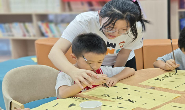思想引领植情怀,传统文化润心灵。实践队员精心设计“祖国旗帜在我心”“汉字观人生”“中华服饰真多彩”课程,从国旗、党旗、团旗的知识讲解,到携手共制国旗升降台;从一竖一撇一横的汉字故事,到手握手感受握笔、运笔和书写;从简单的线条、单一的色彩,到多姿多彩的民族服装。实践团队循序渐进,带领孩子们从中华传统文化中汲取智慧和精神养料,厚植青少年爱国情怀。