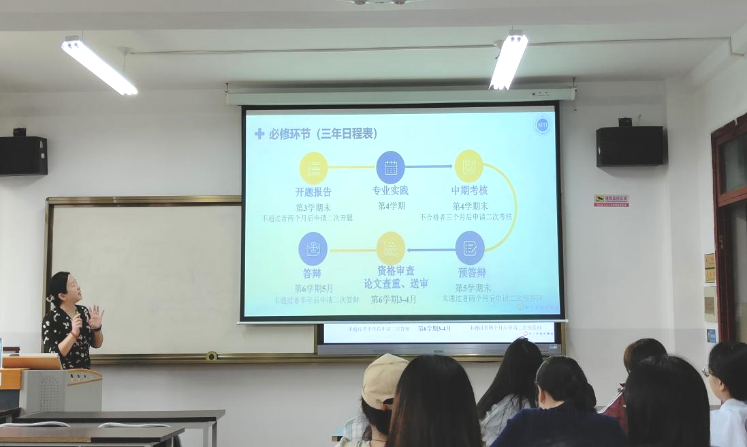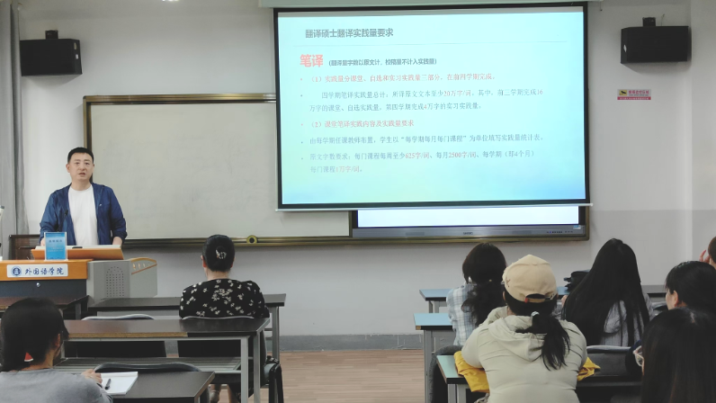 安燕副书记从纪律、安全等方面对翻译硕士提出了明确的要求。白丽梅老师从基本要求、培养方式、必修环节、学位论文等方面对培养方案进行了全面解读。郭亚文老师对翻译实践量、专业实习实践等事项进一步加以说明。