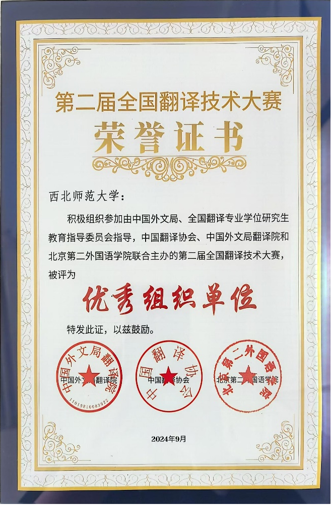 近日,第二届全国翻译技术大赛圆满落幕。本次大赛吸引了全国各地众多高校参与,旨在提高翻译专业学生的实践能力,推动翻译技术教育的发展。我院高度重视此次比赛,精心组织师生参赛,被评为“优秀组织单位”。
