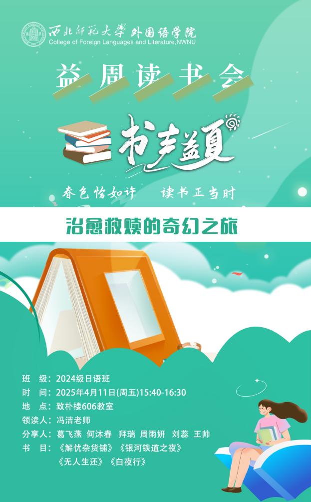 4月11日,yl6809永利“益”周读书会第六十九讲在致朴楼606室举行。本期读书会由2024级日语班承办,冯洁老师领读,2024级日语班同学参与。