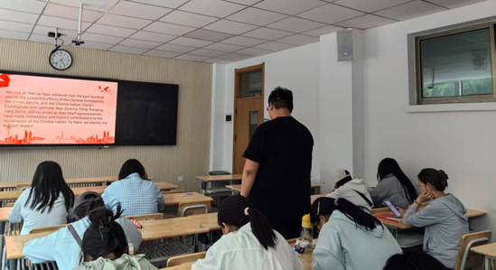 活动期间,穆永寿老师选取了《习近平谈治国理政》第四卷中的部分章节展开深入讲解。通过对中英文版本的细致对比研读,同学们不仅对书中内容有了更为深刻的理解,更对新时代党的创新思想与政策有了全新且全面的认识。在整个过程中,同学们认真聆听、全神贯注,并且踊跃提问,展现出了极高的学习热情。穆老师对同学们积极思考的态度给予了充分肯定,并鼓励大家在日常的学习生活中,主动去了解政治经济类文本的语言特点,深入探究跨文化表达逻辑。