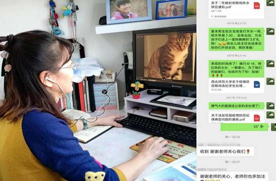 阳春三月,微风轻抚,草长莺飞,黄河岸上的校园里花香四溢,春意渐浓。面对疫情防控的严峻形势,在教学转入线上、校园实行封闭管理以后,西北师范大学449名班主任和1154名研究生导师落实落细教育教学管理服务的责任,凝情学生,关爱学生,教学相长,将网格化管理工作落实落细,像守护自己的孩子一样,悉心守护着每一位同学。